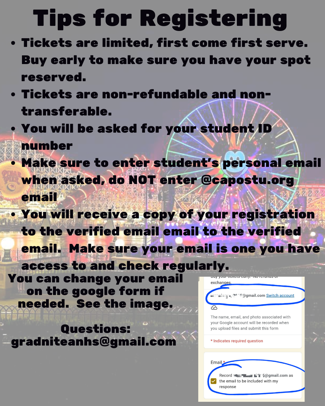 For more information or questions email: gradniteanhs@gmail.com