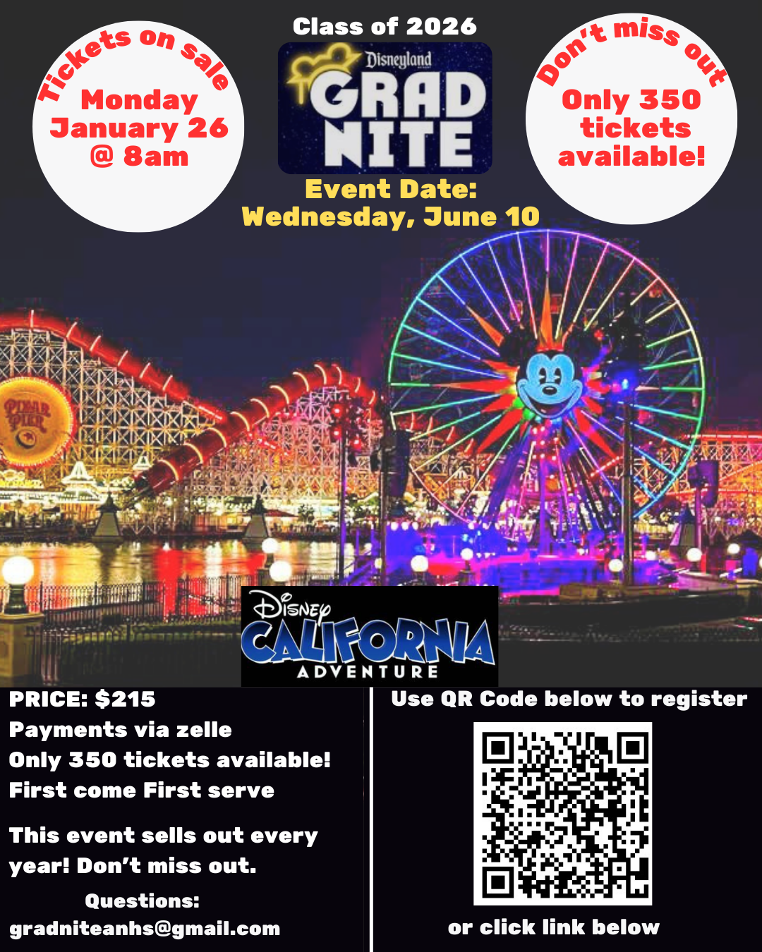 WHAT: ANHS CLASS OF 2026 GRAD NITE AT DISNEYLAND CALIFORNIA ADVENTURE!